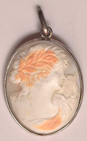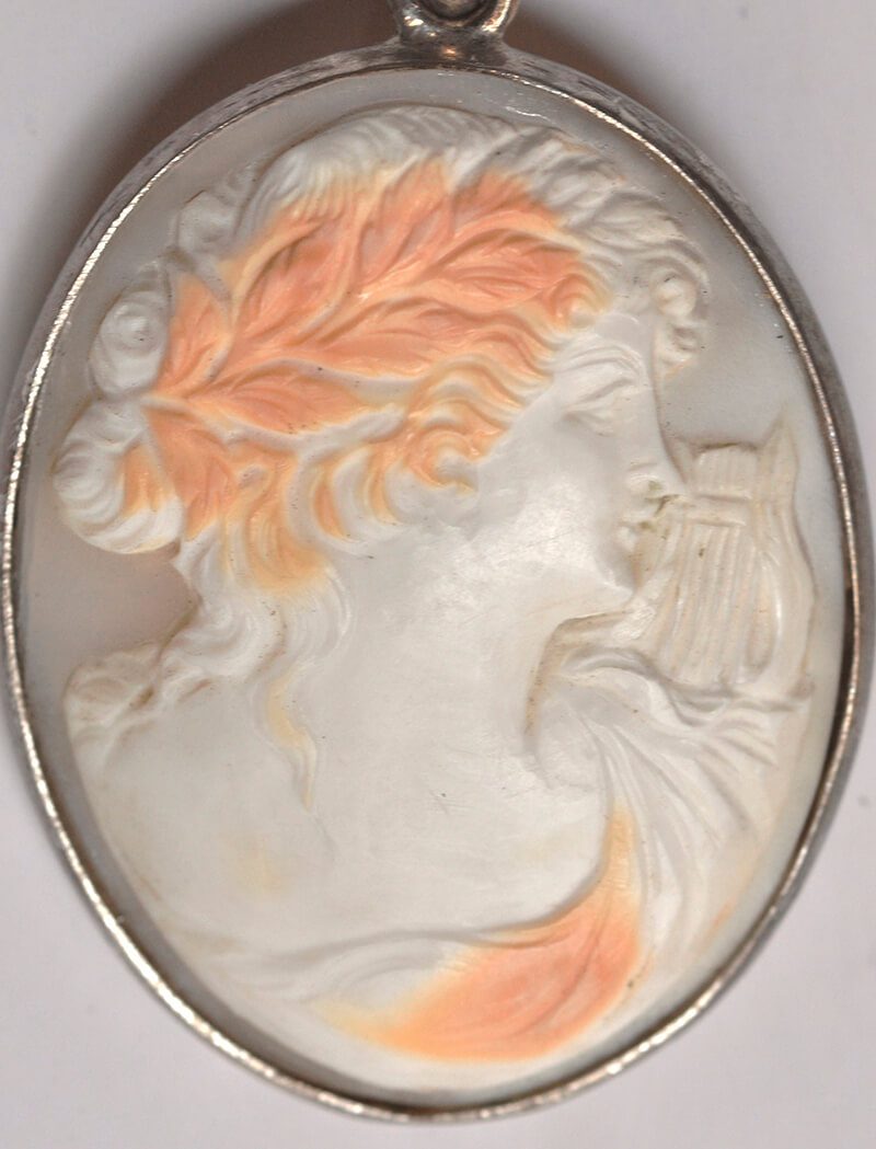 Broche colgante con un camafeo de principios del siglo XX (estilo art nouveau), montado en plata de ley.